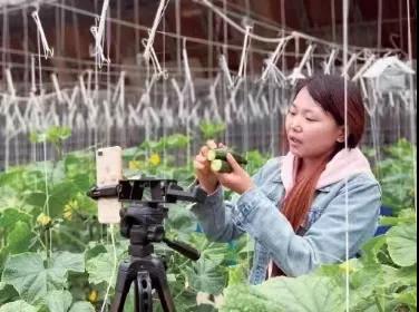 主播兰兰正在北京市密云区河南寨镇农户郝淑英家的大棚内直播。资料图